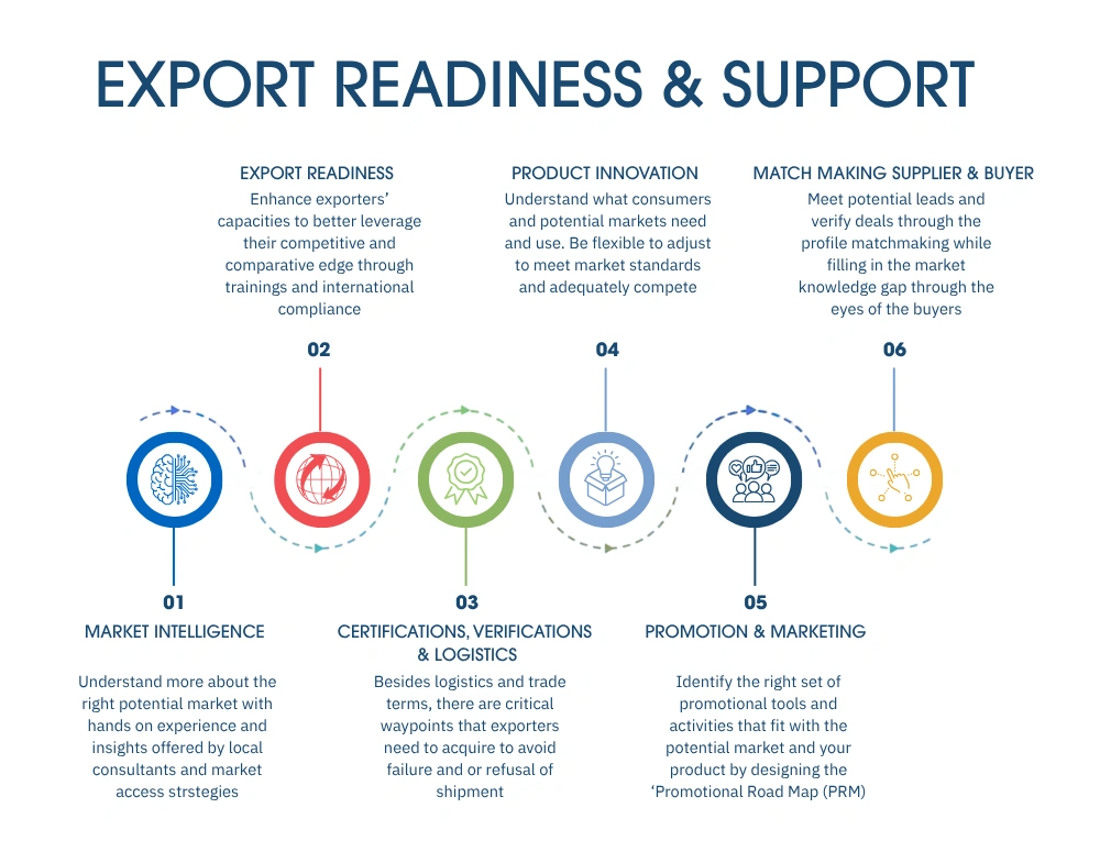 We designed eligibility criteria, selected participants, and delivered a 10-module export readiness curriculum combining group workshops and one-on-one coaching. Activities were reinforced with networking sessions and a hybrid buyer matchmaking event. To ensure long-term impact, a monitoring and evaluation framework was embedded to measure effectiveness and guide future initiatives.