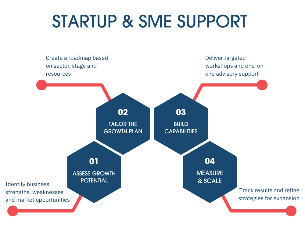 Startups and MSMEs are the backbone of economic growth — but many struggle to scale due to limited resources, unclear business models, and lack of market access.